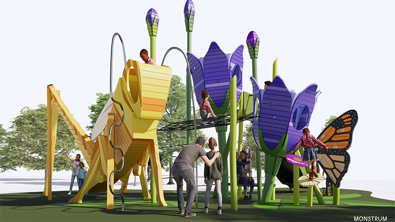Lekplatsen byggs om med temat ”Den förtrollade ängen” och får nya lekredskap. Den nya lekutrustningen kommer på olika sätta vara inspirerad av de växter och insekter som finns på ängen.